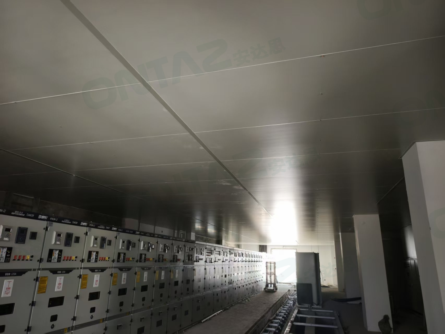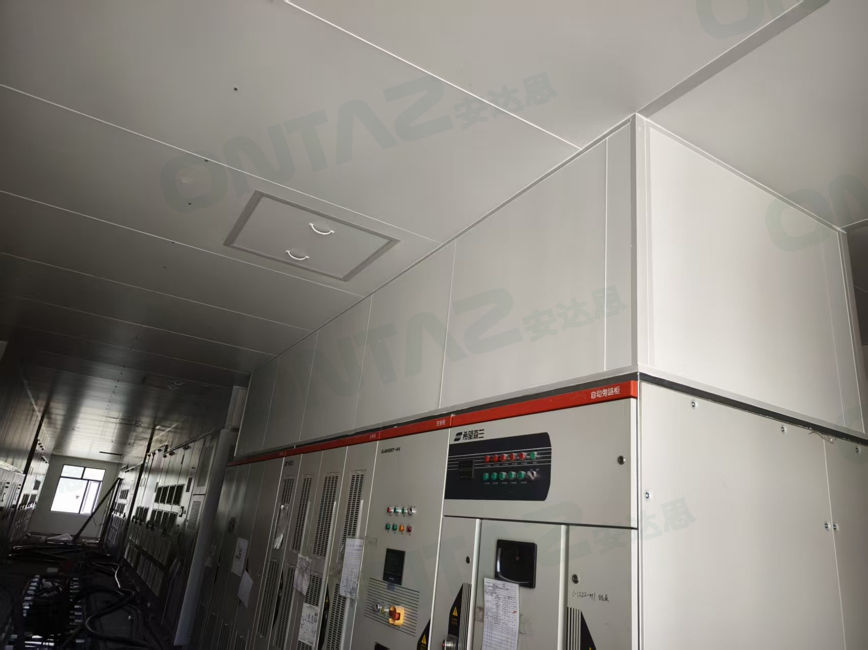 在变频器室装修设计上,项目采用吊顶安装方式,既优化了室内空间布局,提升了设备运维的便捷性与工作效率,又兼顾了整体视觉美观度,实现了功能性与观赏性的双重提升。